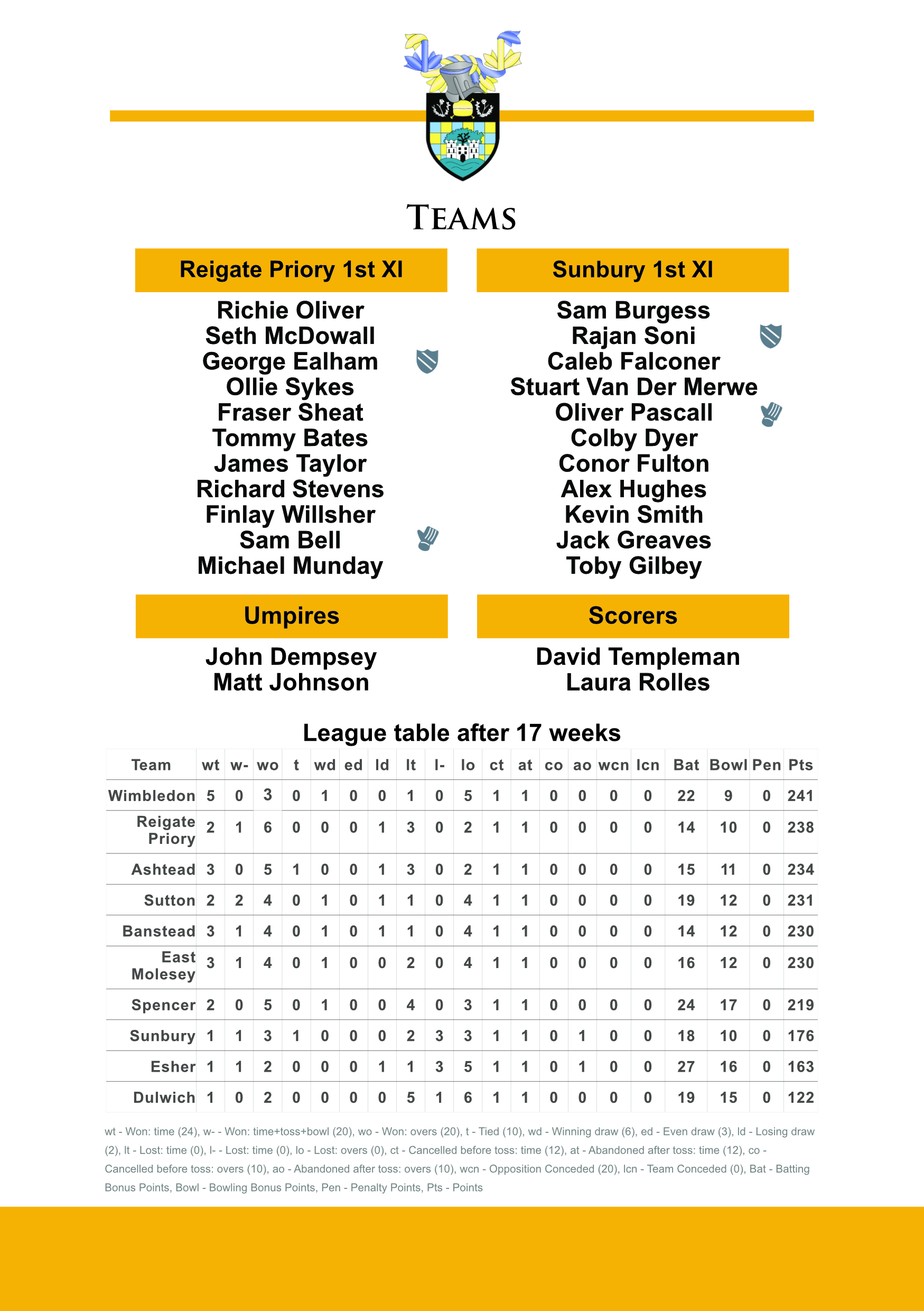 2024 06 22 1s vs Weybridge page 1