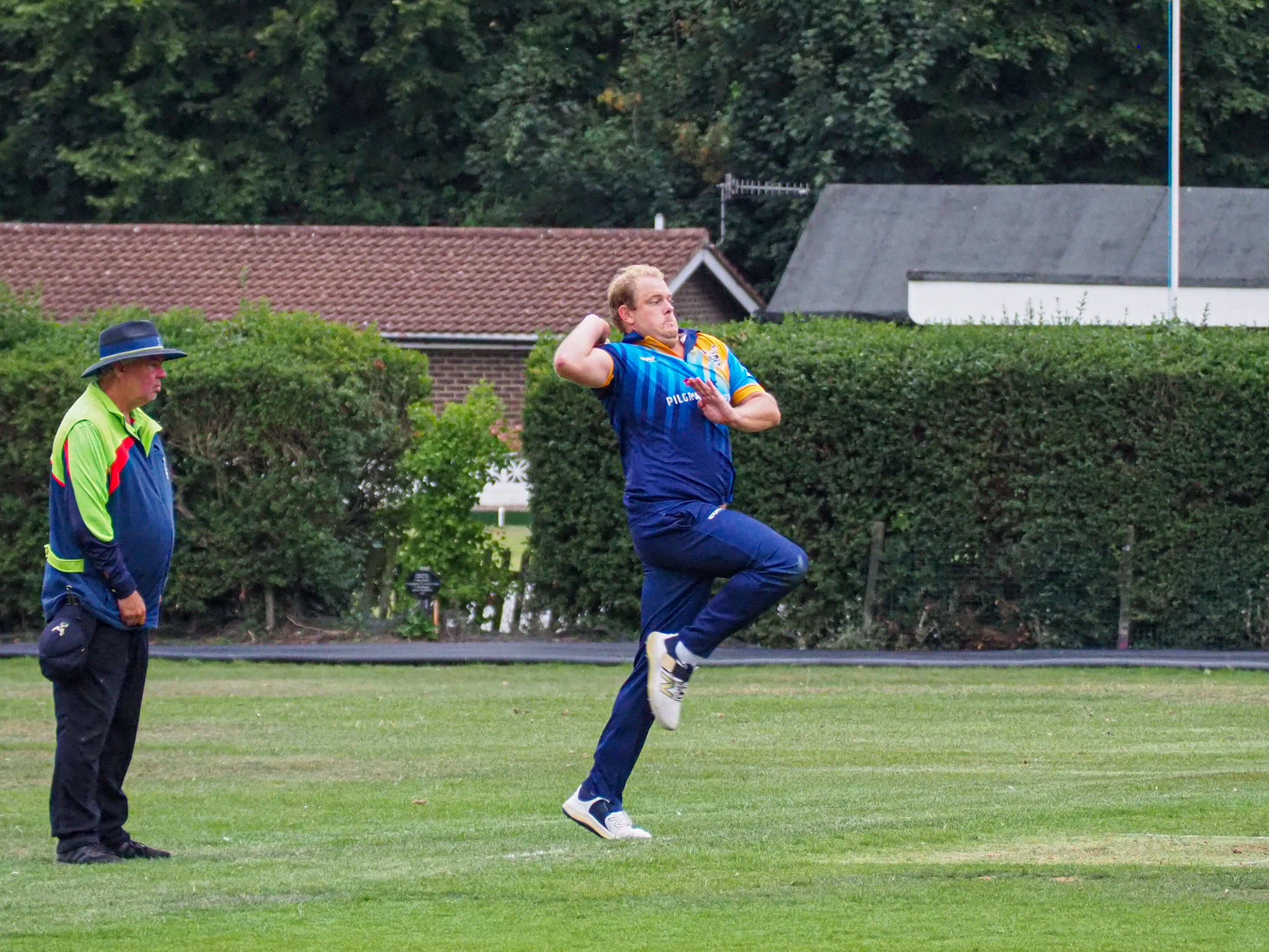 The shoe was then on the other foot as in the 26th over, after a partnership of 80, with the score on 98 Tommy Bates was given out caught for 25 by the same Nicholas Smit/Alex Chambers combination. Once again a 3rd Umpire review would have been requested as Tommy stood his ground believing the ball to have been a bump ball. Strangely the bowler’s end Umpire consulted his square leg colleague who surely would have had a limited view.