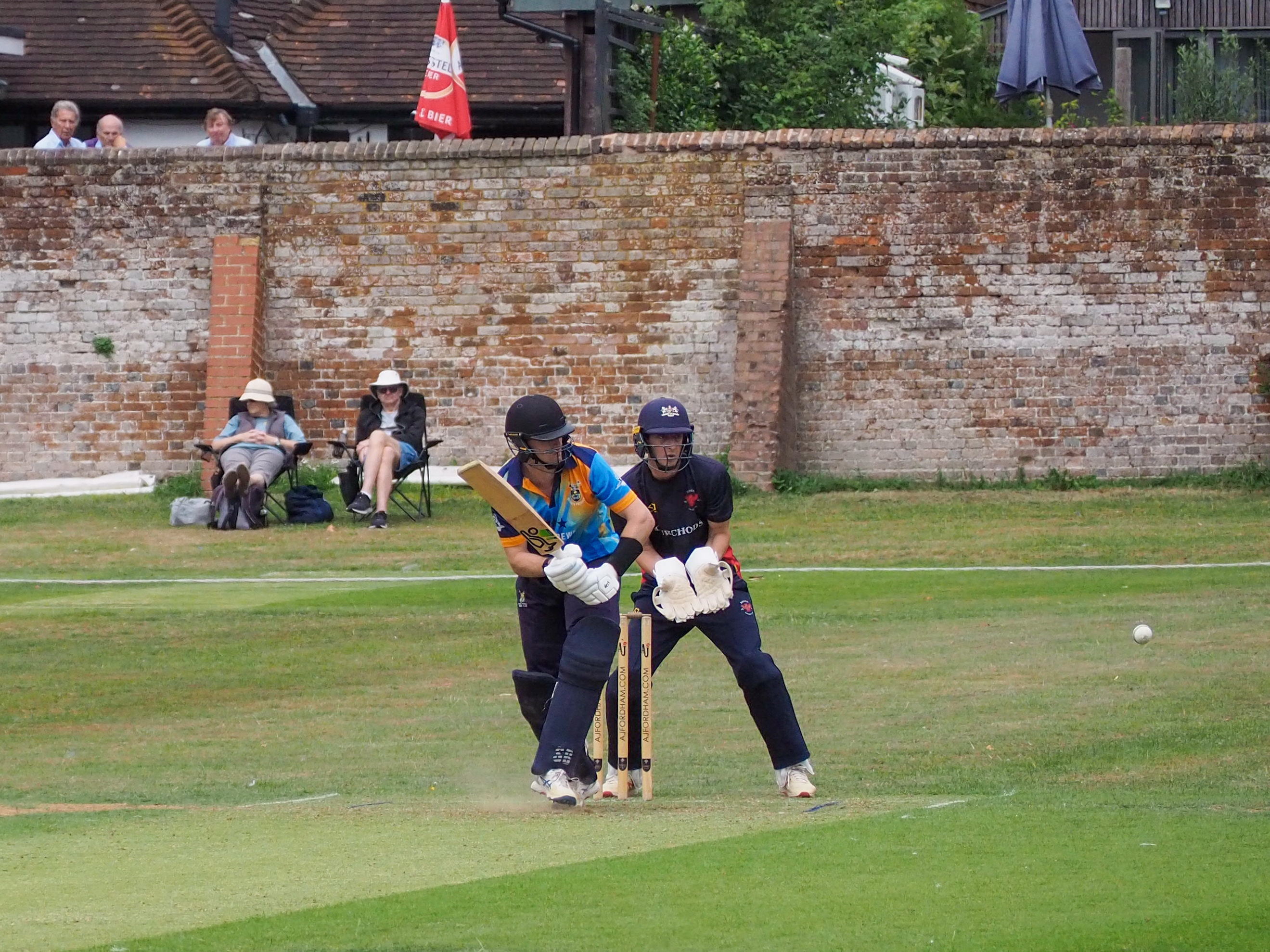 Esher’s tail offered very little resistance as Michael Munday claimed his 3rd wicket (7-0-29-3) getting Ben Townsend (1) lbw and then Dickie Stevens (8-1-28-2) removed Don Butchart (50) with a fine catch by Tendekai Mataranyika as Esher went from 183-7 to 185-8. It was left to Fraser Sheat (9-2-21-2) to mop up the tail bowling both Joe de la Fuente (3) and Thomas Chandler (10) to end the Esher innings on 198 after 45 overs.